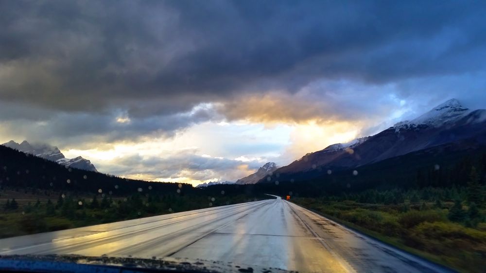 从Canmore出来,一路上沐浴着朝阳。
