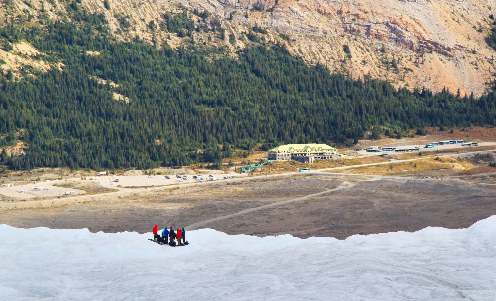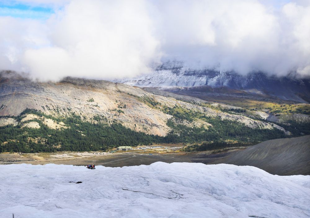 真正踏上冰原后,才更能感受史前冰川的魅力。实实在在地站在冰川上,脚下是三百米厚的哥伦比亚冰原,放眼望去是无垠的松杉林带,还有波光粼粼的高山湖泊点缀其间,与湛蓝的天空交相呼应。但就是这样的美景却从1844年开始每年以肉眼可见速度消融,让人觉得我们现在还能站在这一片冰原上是何其有幸,也让人反思我们是否应该为了保护环境尽自己的一份力。