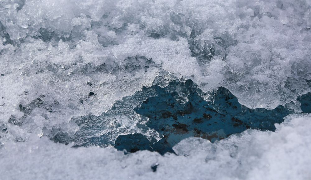 冰原上有很多空洞,表面看不出区别,但薄薄的冰层以下就是融化的冰水,一个不注意就会一脚踏空,踩入陷阱,比如我。。。为了避免这种事情发生,公园每天都有工作人员探测这些新增的空洞,放置警示牌。当然你也可以带一个杯子,接一杯冰川融水带回家。