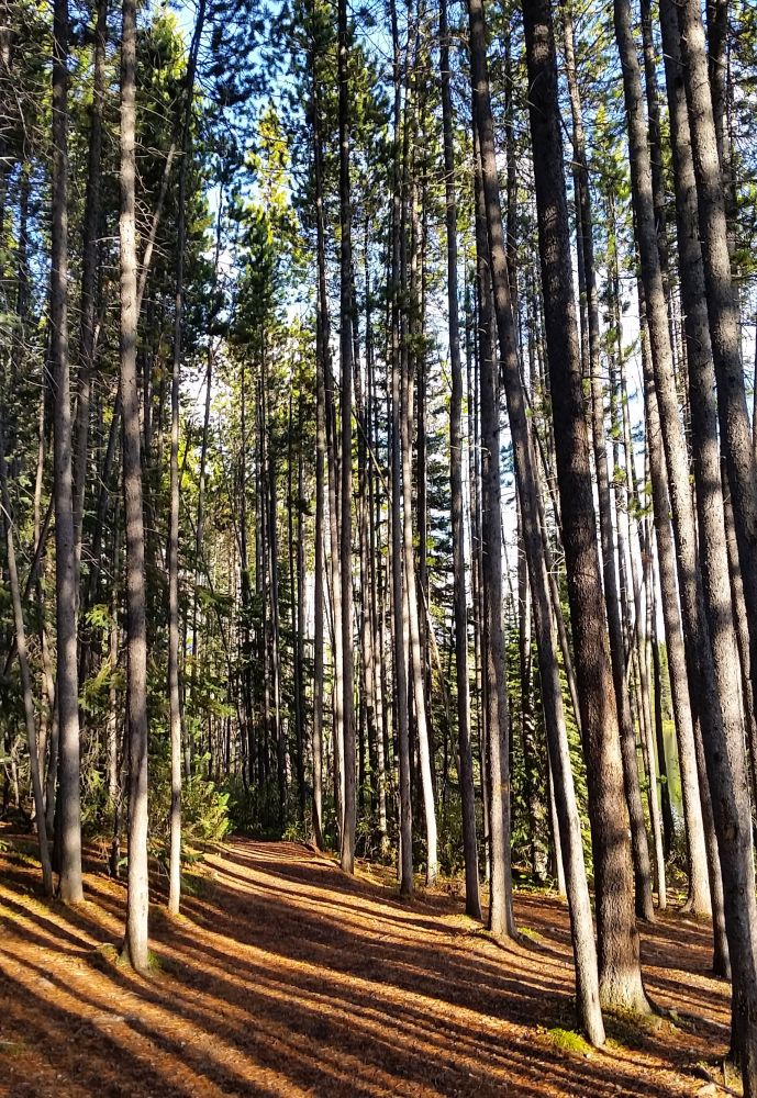 还有湖边笔直的松林,光影斑驳。