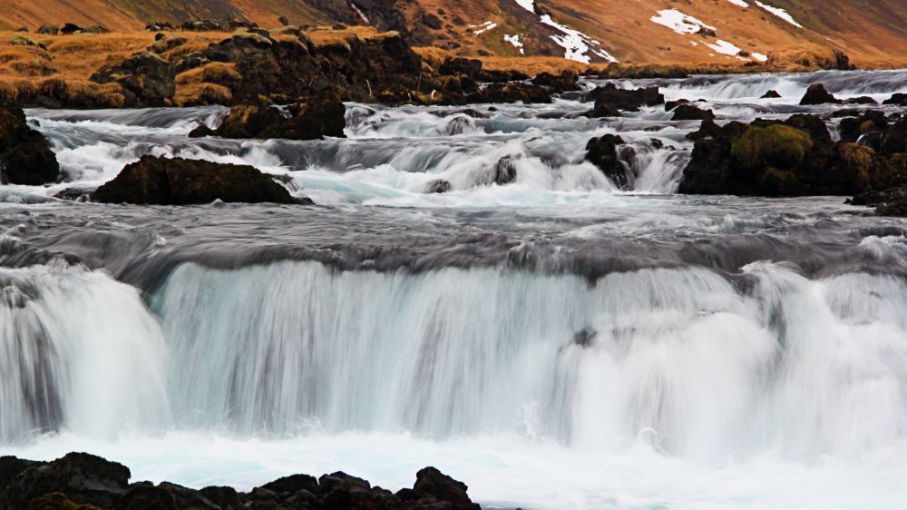 离开瓦特那国家公园往回走的路上,在路边还有一个不知名的小瀑布群。在1号公路上看见路边很多人停车,我们也停了下来。其实是一条河经过一片乱石滩形成的一个小瀑布,也很漂亮。可我到现在也不知道这个瀑布叫什么名字,甚至回家以后,连具体位置都找不出来了。冰岛也就是这样一个路边随处都是景的地方。