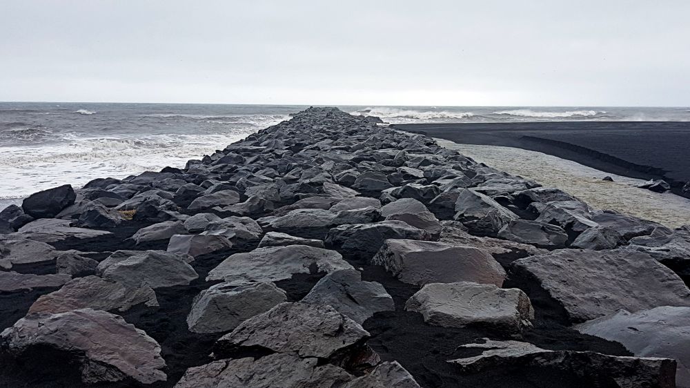 大约在1000年,许多农民在Mýrdalssandur开店。然而,到了十五世纪,这些农庄的大部分都因为来自Katla火山的暴力爆发而被遗弃。如今,冰岛南部海岸约700平方公里的地区被一片广阔的沙漠般的黑色火山沙所覆盖,由Mýrdalsjökull冰帽和从冰川到海洋的冰川洪水沉淀物构成,也就是The desert of Mýrdalssandur。现在,因为担心冰川退缩将导致河流转向和溢出,冰岛人早就离开这个地区了,这里也成为了一片名副其实的荒芜的黑沙漠了。第一次穿越米达尔沙漠(The desert of Mýrdalssandur)的旅客会把石头堆起来做一个石棺,希望给旅途带来好运。堆石冢的传统来自早期的维京人,他们会把石头堆起来,做为路标给在冰岛行走的人指路。渐渐的,越来越多人效仿,石冢的意义也渐渐变成祈求好运。