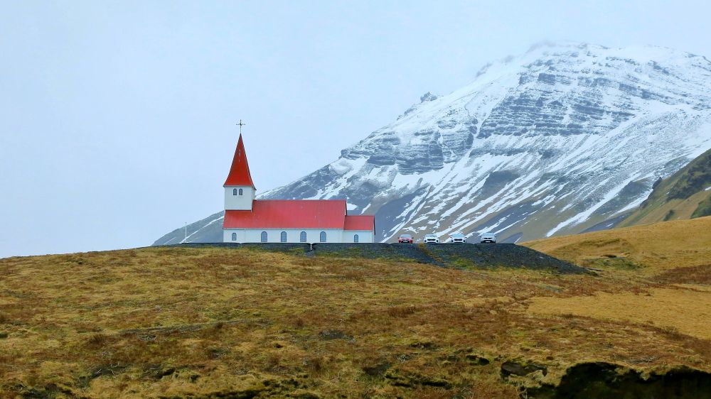 这一座红顶的小教堂算是维克的一个标志性建筑在了,经常出现在网络上各大冰岛的美图中,尤其春天映着山坡上盛开的鲁冰花,是最美的画面。