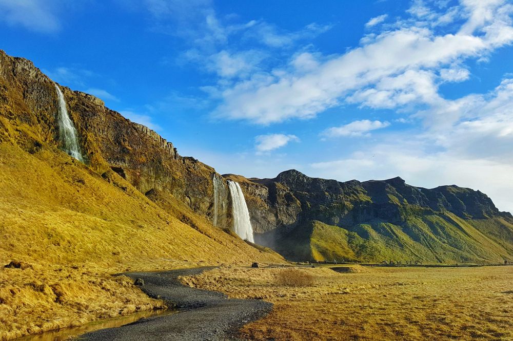 这一路上风一直没有减弱,坐在车上都能听见车窗外呼啸的风声。在一些靠近山崖的路段,风从海上吹来,遇见山崖的阻挡形成旋风,我甚至觉得能把飞驰的车都给掀翻。就这样一直持续到了接近赛里雅兰瀑布的时候,天才开始真正放晴。这时才觉得今天一天与风暴的赛跑终于结束了,而风暴也最终被我们甩在了身后。
