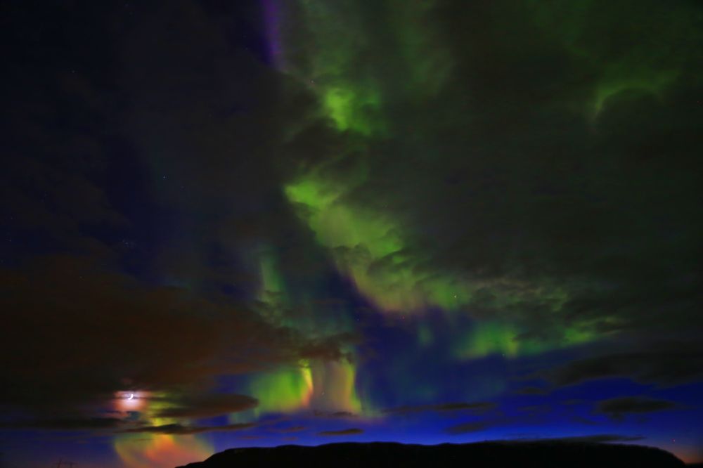 之后的也再也没有彩色的极光出现过,绿色的部分也是时有时无。