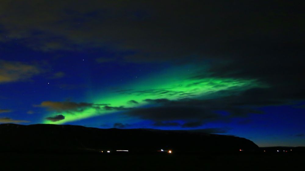 本以为今天一天都是糟糕的天气,我们期待中的很多美景也无缘一见,心情颇为低落,没想到到最后老天竟然又给了我们一个大大的惊喜。至此,这已经是我们这一次短短的旅行中第三次看见极光了。原来生活中处处充满了惊喜,你永远不知道以后会发生什么,而我们要做的就是随时保持着向往的心态去面对生活。