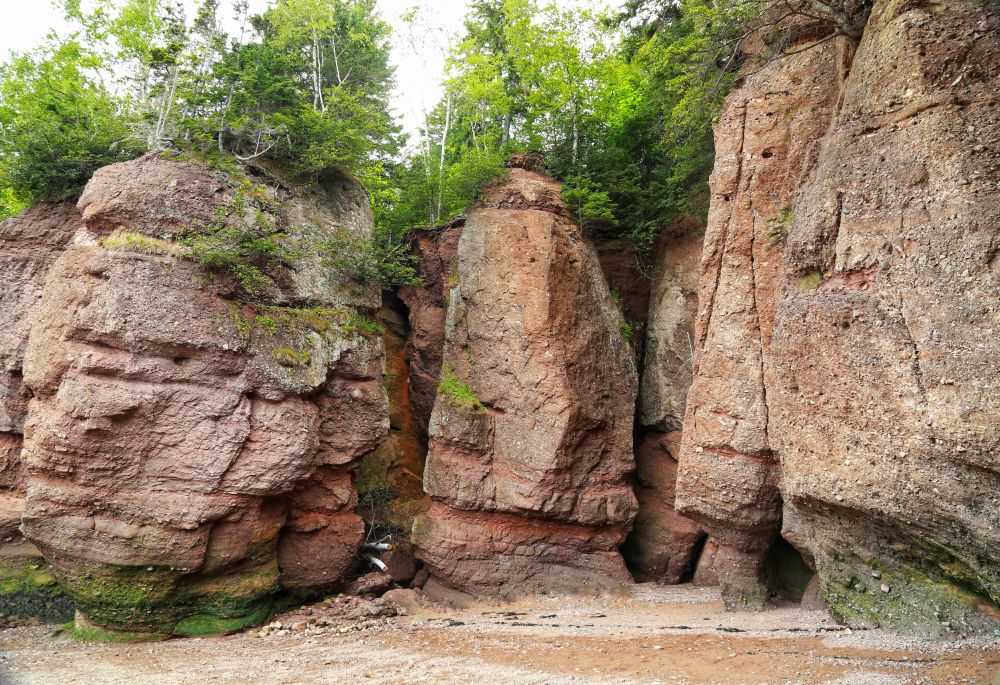 离开磁力山不到一个小时的车程,就来到了Bay of Fundy,在这里可以看到世界上落差最大的潮汐。在Bay of Fundy这里有两个主要景点,Hopewell Rocks Park和Fundy National Park。观赏潮汐的最佳去处当然是Hopewell Rocks Park。由于潮汐是有时间规律的,去之前小伙伴们最好提前查好涨潮落潮的时间,再根据自己的喜好安排行程。也由于潮汐时间的限制,很多人不一定能在一天里看完涨潮和落潮,所以这个公园的门票也是两日票,给大家充足的时间去体会潮起潮落的威力。