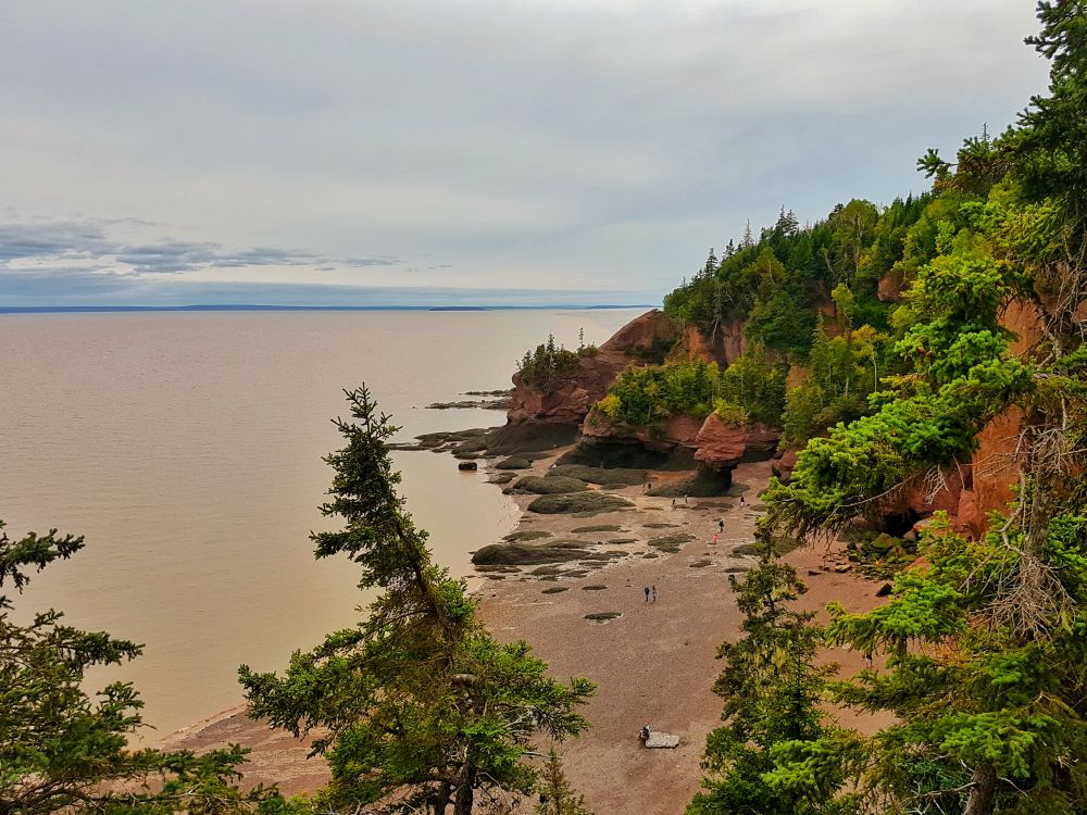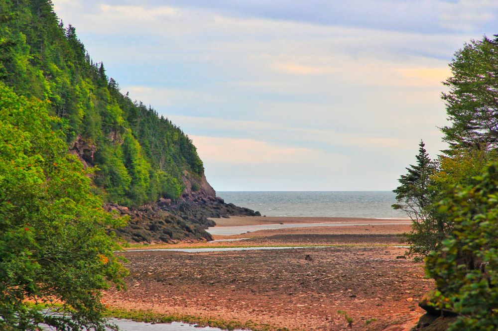 Bay of Fundy的潮汐是世界上最高的潮汐,每12小时一个轮回,每次有约1,600亿吨海水涌进涌出,这个数字超过了世界淡水河流的综合流量。最好的观潮点就在Hopewell Rocks,位于World’s Highest Tides Ecozone,具有独特的海岸地理特征。这里的潮汐最高落差能达到16米,但并不是每一次涨潮落潮间的落差都能到这么高。我们去的时候潮汐落差在12米左右。这里的生态环境也是独一无二的。每年8月,大型的潮滩将成为成千上万的迁徙水鸟的栖息地,并被指定为西半球水鸟保护区。