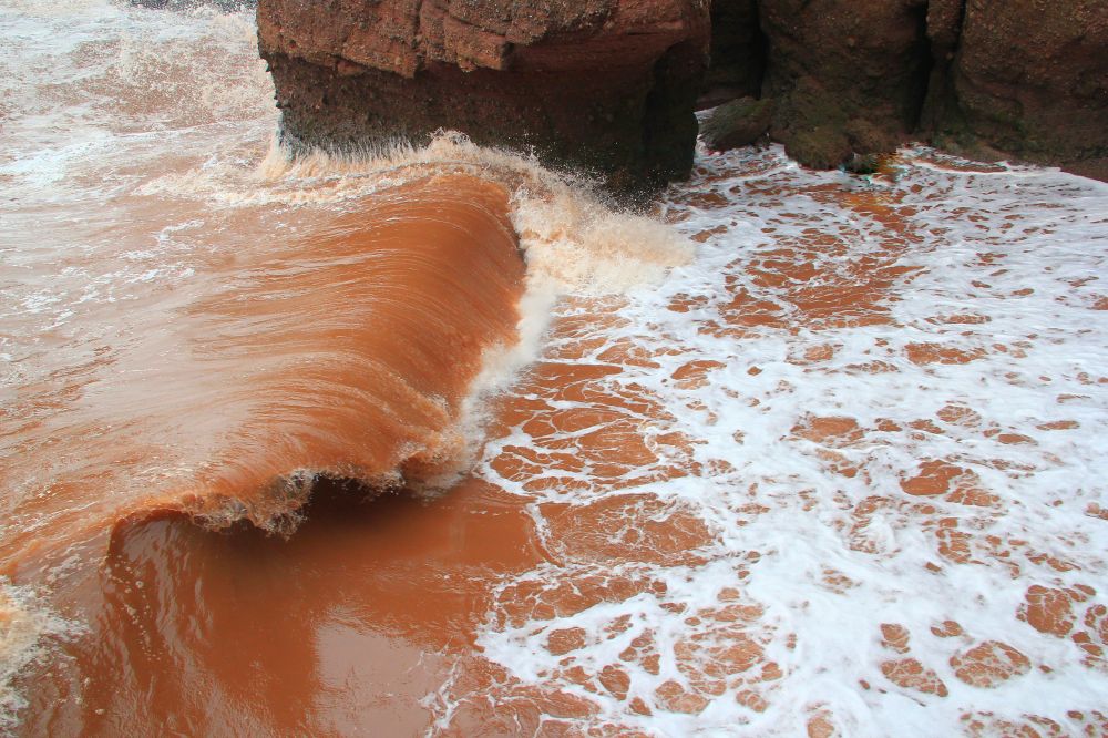 第二天早上,算着时间再次来到Hopewell Rocks Park观赏高潮。一夕之间,桑田沧海,浪潮汹涌,昨天的一切都被海水淹没。