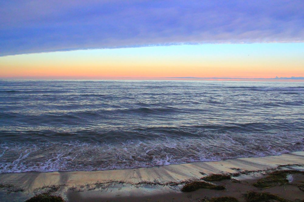木栈道连接大路和一片沙滩,朝东,是一个看日出的好地方。晚霞其实也不错,如果没有头顶一片厚厚的锅盖一样的云层就更好了。