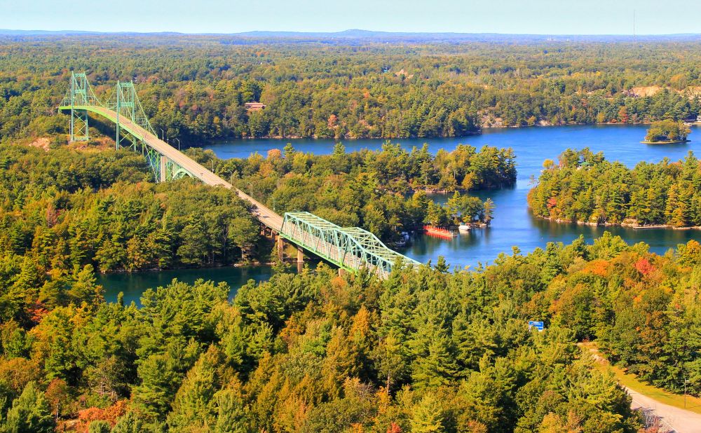 Thousand Islands Bridge横跨St. Lawrence River上,如果秋天树叶红了后会更漂亮,这时稍嫌早了一些。