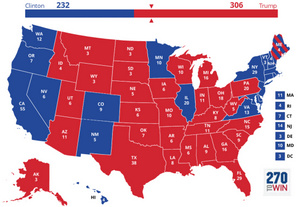 看上面左右图的对比,左图是最后的结果,右图是我选前预测他以两票险胜(原文在这,有放大的两图)。我当然希望川普能赢,所以把所有我能想到的摇摆州都给了他,结果他表现确实不错,像FL, OH, NC这些希拉里不必赢他却不能输的摇摆大州他都赢了,可是想赢100%的摇摆州谈何容易,最后他没能拿到NH和NV,这两州加起来虽只有十票,但一正一负他本来不是赢两票而是输18票的。其他共和党候选人出马想赢100%摇摆州也是几乎不可能的事,所以共和党本来是根本没有胜算的。