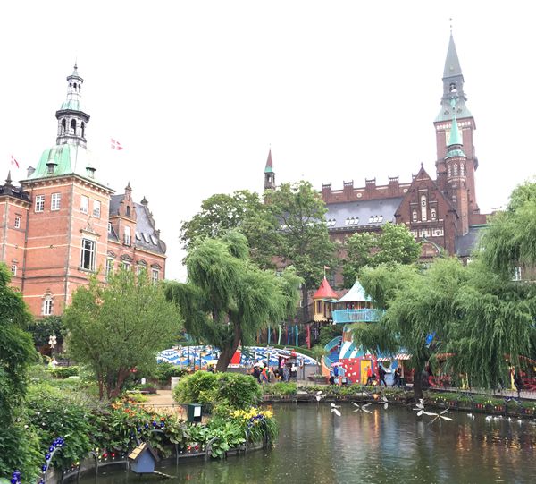 我们的旅馆位于火车站斜对面,放下行李后仅步行五分钟便到了这个 城市的中心公园-Tivoli Garden,它占地八万平方米,是欧洲 著名的游乐园,里面有小湖,儿童游乐设施,啤酒屋和各式小餐馆。我们去了一 家自助餐厅,没吃到什么,但是第一次感受到了丹麦的高物价(每个人只吃了少少的几样,就花了八十美金)。