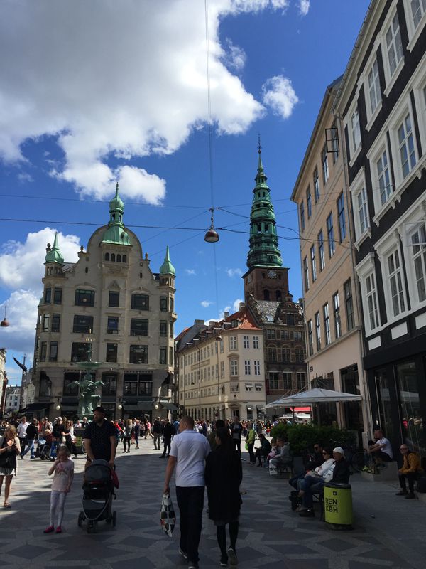 走路十分钟便到了哥本哈根市中心的步行街。这是欧洲最长的商业街。时尚的商品与古老的建筑相型益彰。各式餐厅,咖啡馆,时装店,街头艺人,足以让我们感受到了这里的热闹和繁华。