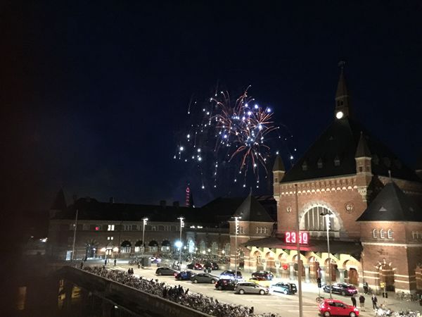 丹麦夏日的白天是漫长的,直到晚上11点钟,夜幕才慢慢的降临,当我们已经躺下时,突然窗外响起了噼噼啪啪的声音,一幅美丽的礼花图映在了窗子上,这是Tivoli Garden 每周六晚上的烟花秀。我们站在窗前,望着绽放的多彩烟花和被烟花照亮的火车站尖塔,心里满满的幸福感溢了出来,我们好幸运!