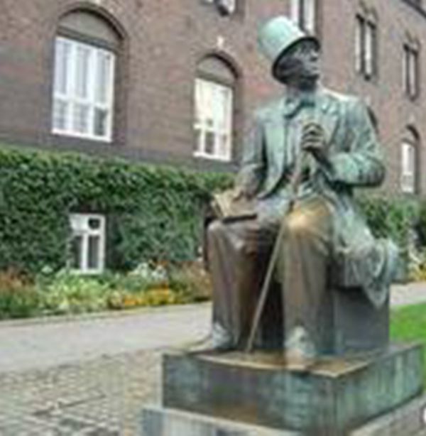 安徒生铜像(HCAnderson),童话大师安徒生是丹麦人的骄傲,他的雕像座落在市政广场上, 静静地守望者故乡的大地。尽管他一生未婚,穷困潦倒,但却给人们带来了宝贵的精神财富。