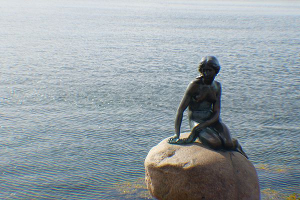 美人鱼雕像(The Little Mermaid),雕像位于哥本哈根的长堤公园的港口边,1909年,嘉吉伯创办人的儿子卡亚布克森对童话故事为题材的芭蕾舞感兴趣,最痴迷的是里面的女主角,想请她做人物原型,但没得到同意。他于1912年委托雕塑家爱德华根据安徒生童话,并以自己的妻子为蓝本,塑造了这个在人们心中很美好的,举世闻名的雕像。