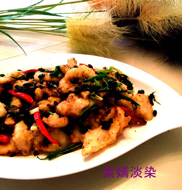 2)炒避风塘料:锅内少许油(不能过多)炒蒜粒,干红辣椒和豆豉,待蒜粒微干