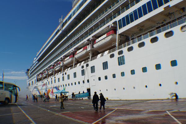 邮轮结束的这天,一个小细节让我有些感触:当我们拖着行李,站在离船体最近的地方,最后一次扭身深情地回望这艘陪伴我们九天旅途的巨轮时,看到往日人头攒动,熙熙攘攘的甲板上,今日格外冷清和寂寥,只有两位老夫妇趴在栏杆上俯视着我们,老太太还在和我们挥手告别,那在风中飘起的白发,那宽大袖管里细瘦的胳膊,至今都历历在目…那是一种什么样的感觉,只有心知道。