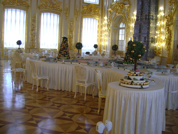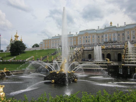 这座宫殿是叶卡琳娜大帝的夏日别墅。在这里你看到的是俄国皇室的极尽奢华,到处金碧辉煌!