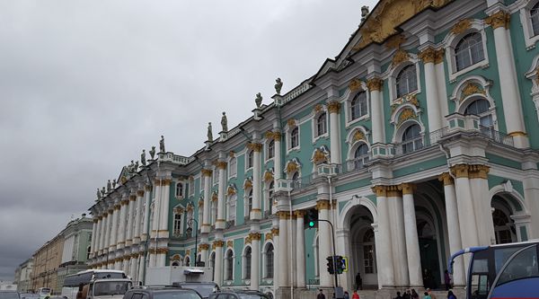 冬宫原为俄国沙皇的皇宫,十月革命后成为世界四大博物馆之一。拥有270万件藏品,400多间展厅。由众多大柱子,窗子配上薄荷绿、白色和金色,以及屋顶上一排经典的雕像,内部装饰金碧辉煌,美轮美奂。这就是闻名遐迩的冬宫:恢弘、雄伟、壮丽!