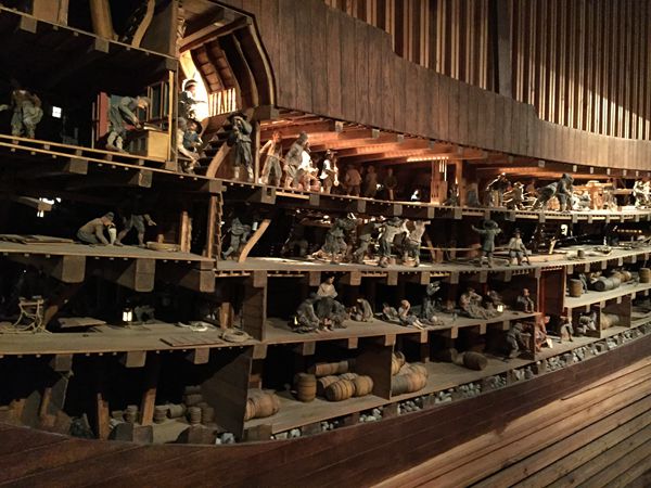 当时没有找到,过了300年后才打捞上这艘沉船。后来用了几十年的时间来修饰成现在的模样。一楼是战船的展厅,二楼以上是船的内部结构模型图和船上的武器及生活用品展厅。这是我们印象最深刻的一个景点,静静地躺在大厅里的古战船在讲述着那段悲哀的故事,承载着那段厚重的历史。