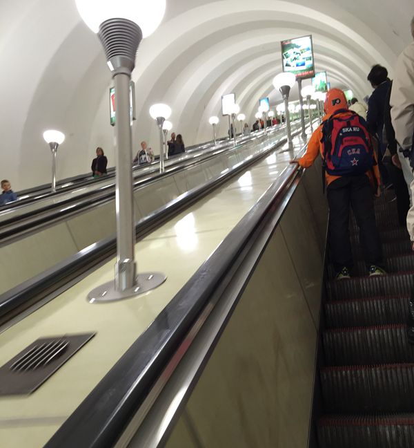 有人开玩笑“如果说巴黎的地铁站是土拨鼠挠出来的,那么俄罗斯地铁就是希腊天神挖出来的,配得上沙俄帝国”。这1955年建成的地铁,斜斜地深入地下58-70米(分两段)。当你站在这陡峭如尖刀斜插入地下的地铁的滚动电梯上时,你就会惊叹这简直是人类的奇迹!