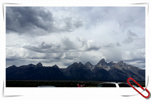 在开往大提顿国家公园的途中,一路可见辽阔的草原上散落着悠闲的牛羊群,波光粼粼的弯曲河流沿着公路向前延伸,一直到了大提顿国家公园门前。高耸入云的连绵山峰覆盖着积雪,云雾缭绕很为壮观。