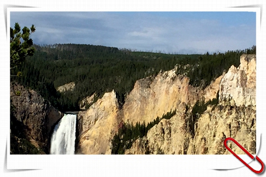 黄石河在高处的峡间跌落下来,形成一条白色瀑布,两侧彩色的峡壁拥着清澈的激流婉延而来。这简直是一幅中国彩色山水画!峡壁是用奶黄色、淡粉 色、混和着黑色和白色涂成的,我根本就没有思想准备来接受这一美景。来之前只知道黄石公园里的地热、温泉地貌以及野生动物 很出名,但真没想到世间还有此自然天成、像画出来的彩色峡谷!惊喜在眼中闪烁,兴奋在脸上荡漾。