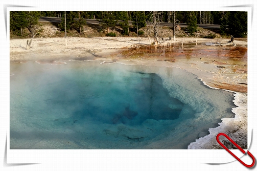 这是黄石最热和酸性最强的热泉(90度摄氏度),到处弥漫着浓烈刺鼻的硫磺味儿。它也是极不稳定的热泉。