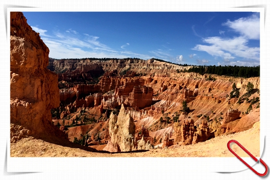 七天的旅游看到了许多生平从未见过的震撼景色,激动亢奋的心有点疲劳了,但面对这壮观的红褐色大峡谷,这刀削般千姿百态的悬崖峭壁,危岩嶙峋,还是忍不住兴奋不已了,我们不得不承认,这里的地貌很壮丽,很美!这是布莱斯峡谷国家公园(Bryce Canyon National Park)。