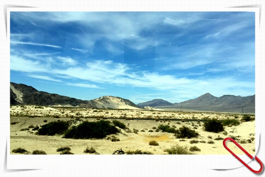 这一天实际上没有任何景观可看,那是625公里长的苍凉大漠,望着那一大片荒野,心底里涌出了“西出阳关无故人”的凄楚。导游告诉我们,这里是加州的最大沙漠,美军士兵派到阿富汗,伊拉克去之前,都要在这里接受艰苦的训练。