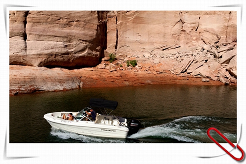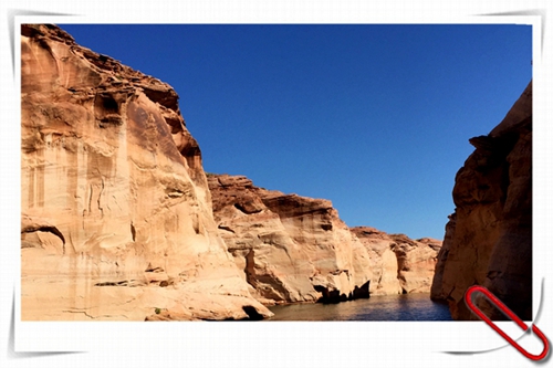 就在船头转弯时,我们看到了格兰大坝。格兰峡谷其海岸线长1960英里,有96个峡谷,犹如将大峡谷搬到湖面上一般。
