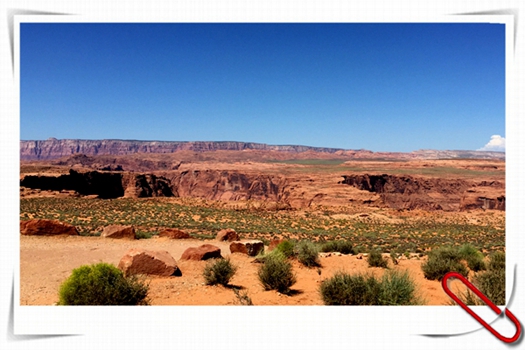 大巴把我们带到了马蹄湾的停车场。朝向马蹄湾方向看去,如上图所示,好像只是地不平坦,看不到有什么特别的。