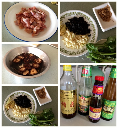 材料:鸡腿肉2磅,泡发香菇数朵,蒜蓉,豆豉,姜丝,糟卤,蚝油,豉汁,糖。