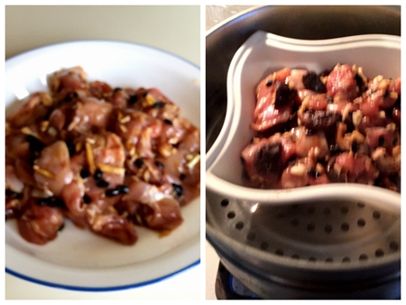 3. 大火蒸15分钟(盘子放鸡块儿)-20分钟(碗放鸡块儿),盛出后撒葱花