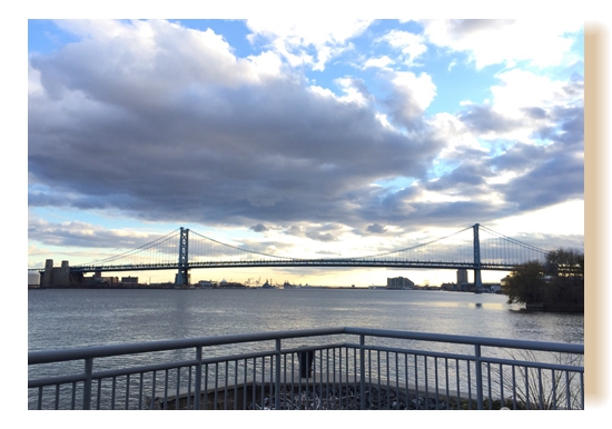 费城的Delaware River 河畔。远眺的那座桥是通往新泽西州的。