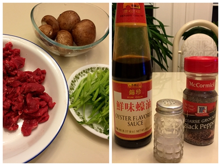 主料: 嫩牛肉(Sirloin Tip Roast)1磅,小蘑菇片,中国芹菜丝