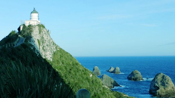 【灯塔(Nugget Point Lighthouse)】建于1969年。它位于南岛东南端的海岬,有一个观景台。我们的车队开过去时,正逢夕阳西下。