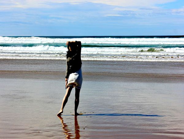 大教堂洞穴外的沙滩,被海水冲刷的干净又绵软,让人忍不住在海浪的轻吟中起舞。为了拍摄这组照片,竟让外套被海浪打湿并推向了岸边。