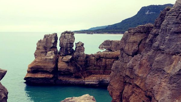 【薄饼岩(Punakaiki Resort)】也叫千层岩,形成于3000万年前。千万年小型海洋生物和沙土的交替层压,并埋于海底,产生了多层次的海底岩石。