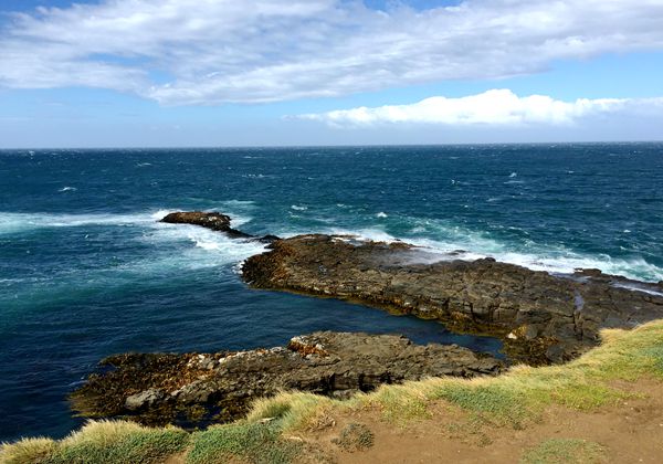 【库里欧湾(Curio Bay)】位于南岛的南端,这里的风浪也很大,体验着何谓“一石激起千层浪”。很多宿营地隐藏在分割好的草丛中。