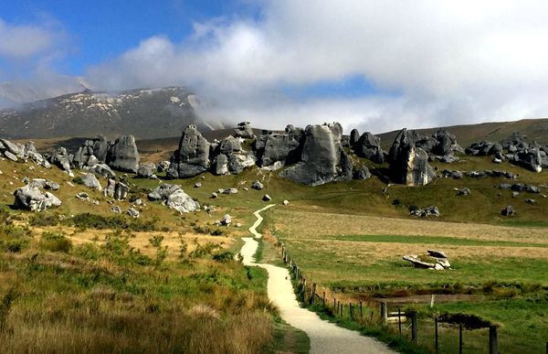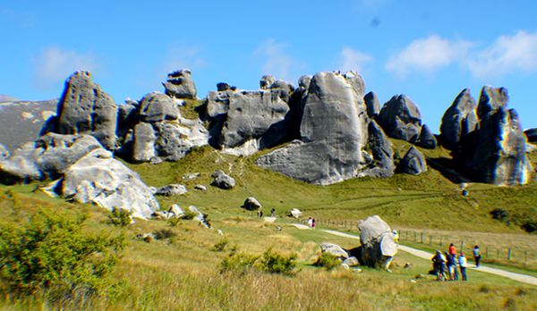 【城堡丘(Castle Hill)】是距基督城一个半小时远的一处小石丘。一组组耸立云端的天然巨大石头阵,史前沉落在大海中的石灰岩,因地壳拱起,已经上升了海拔700尺的高度。