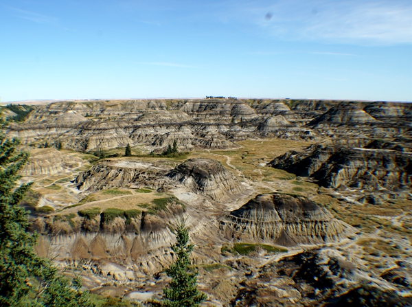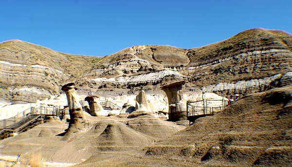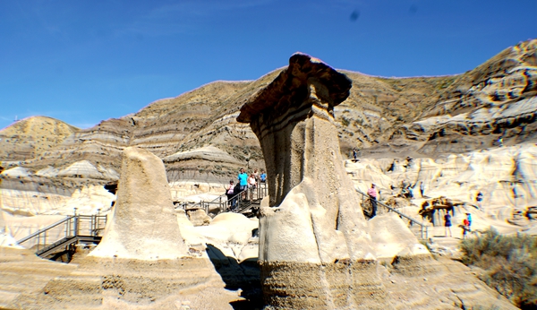 这个峡谷坐落在小镇Drumheller 附近。独特的地貌被称为“加拿大恶地(Canadian Badlands)”。这里拥有七千万年的地质历史,原来是内陆海的沿海低地。