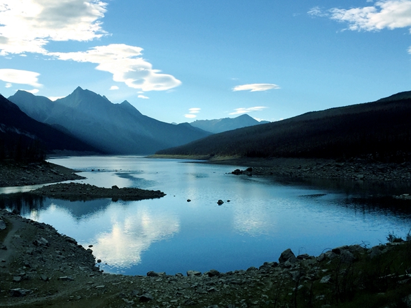 这是一个景致如画的冰碛湖,离Jasper镇开车15分钟。也是摄影人照日出和夕阳的好地方。