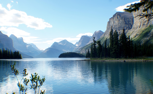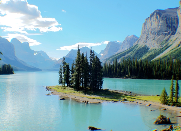 举世闻名的“精灵岛(Spirit Island)”是指在湖心露出水面的一片小小岛。有位摄影家为了拍到精彩的画面,在岸边露宿多日,终于捧回了大赛金奖,这座精灵岛也被世界知晓。