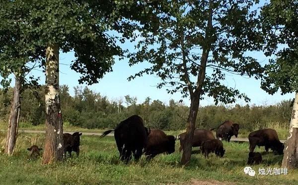 我们是幸运的,“邂逅”了一群在路边觅食的野牛。