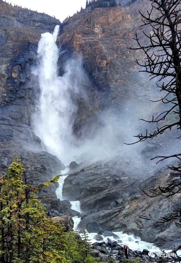 Takakkaw Fall 是加拿大西部第二高瀑布。水流体长254米。夹裹着白色烟雾的水流腾空越下,奔泻而去,撞击岩石发出了或高或低的吼声,别样的壮观。