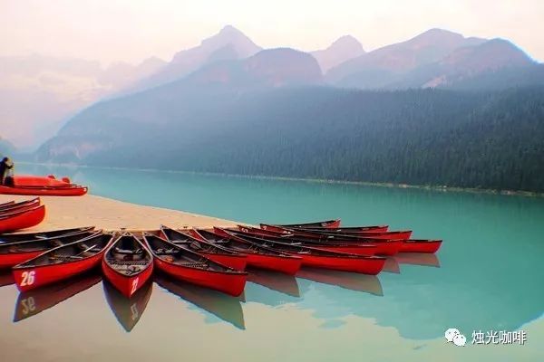 被很多杂志登上封面的露易丝湖,源自维都利亚冰川(Victoria Glacier)融化,澄清的像一块透明的翡翠,冰肌玉骨,超凡脱俗。