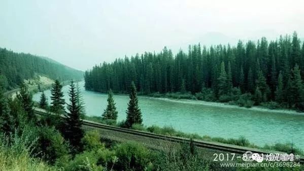 近露易丝湖的地方,有一条铁路线沿着弓河和山林大大地划了一个优美的弧线。火车每小时经过一班。